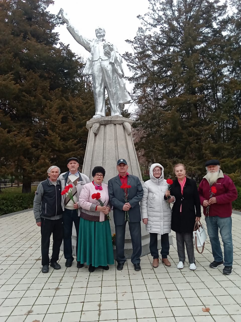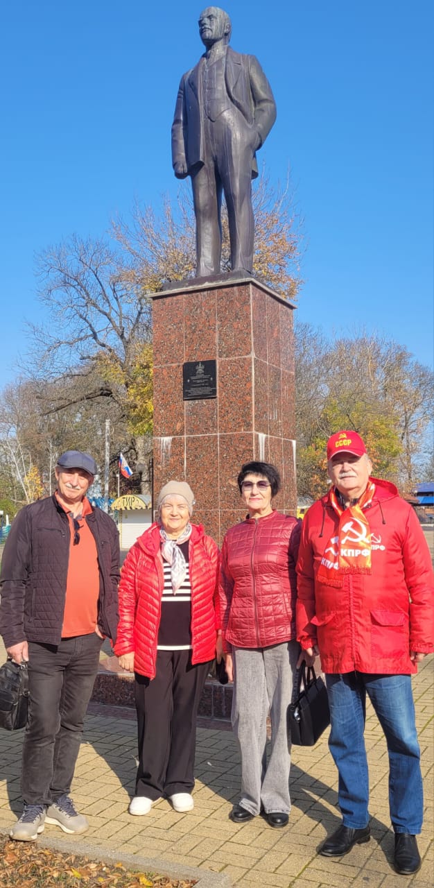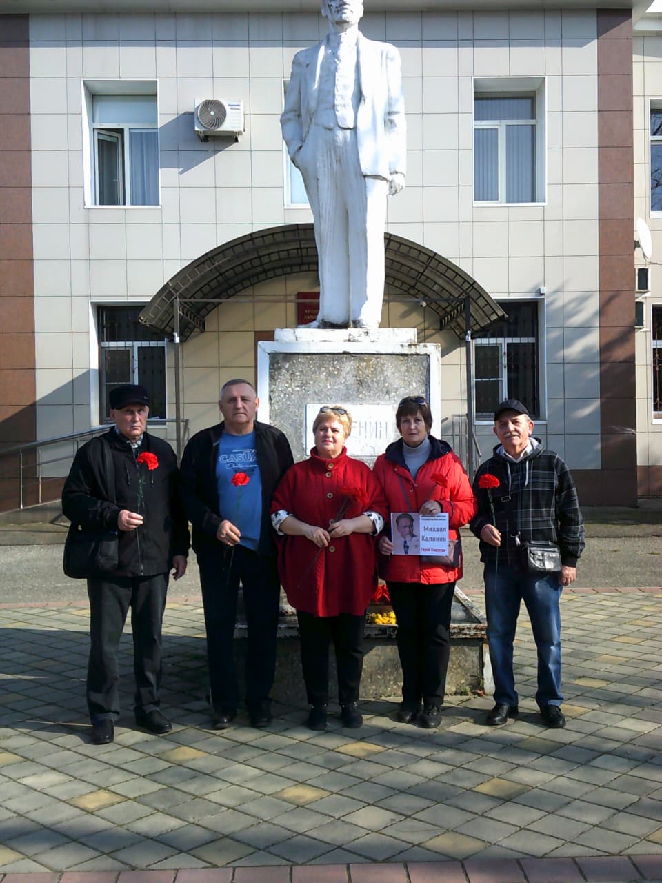 Станица Выселки. Активисты КПРФ и Союза Советских офицеров, ветераны Вооруженных сил и комсомольцы возложили цветы к памятнику В.И. Ленину. Прозвучали речи о становлении Советского государства и роли его руководителей. Затем состоялось заседание Бюро райкома партии.