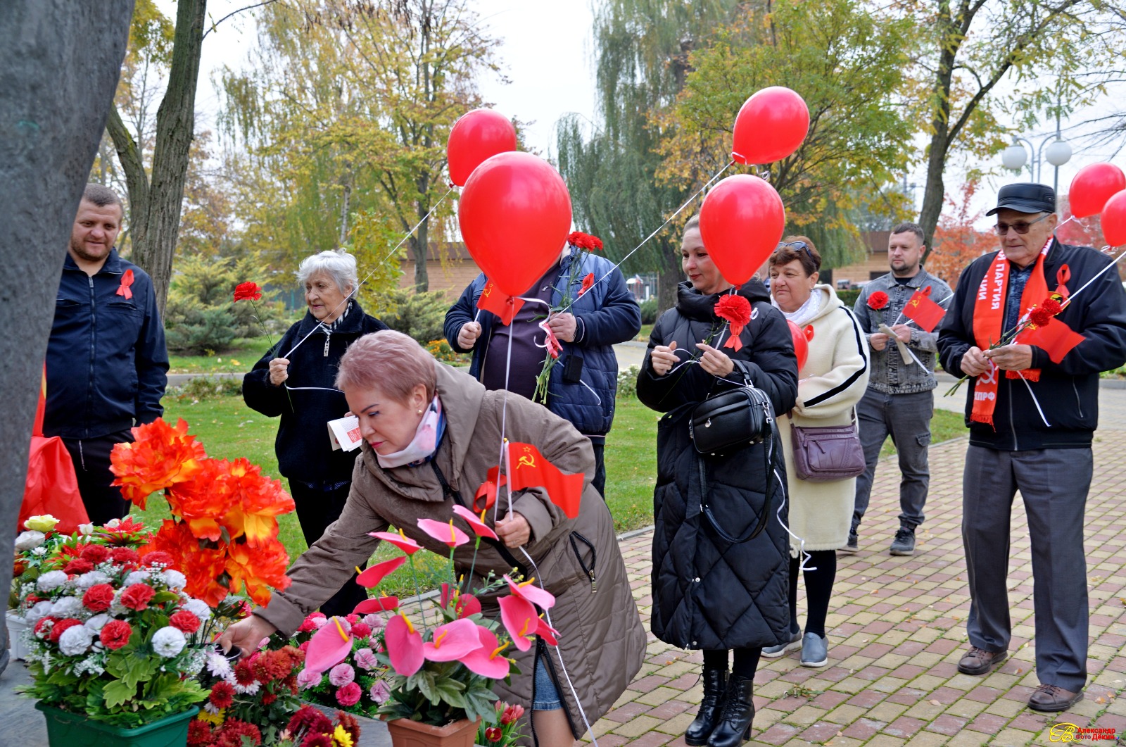 Утро в Тимашевске ознаменовалось автопробегом. Коммунисты и актив Союза Советских офицеров под красными флагами проехали по самым загруженным улицам, чтобы напомнить о Великом Октябре жителям, спешащим на работу. Водители встречных автомобилей активно приветствовали красную колонну. Участники акции возложили цветы к памятнику членам ревкома станицы Тимашевской, погибшим в 1918 году, к мемориалу Защитникам Родины, памятному знаку в честь 100-летия комсомола и к памятнику В.И. Ленину.