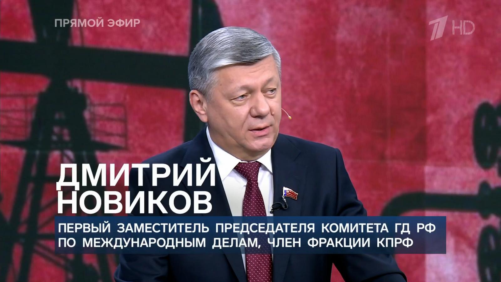 Во ходе программы произошла дискуссия между Дмитрием Новиковым и политологом Геворгом Мирзаяном. Последний объявил, что Россия должна принять новые реалии и не мешать США развязать войну. Этими ошибками Вашингтона, дескать, можно было бы пользоваться. Зампредседателя ЦК КПРФ не согласился с таким подходом. Он подчеркнул, что Россия должна выступать в защиту международного права, а не втягиваться в международный бандитизм.