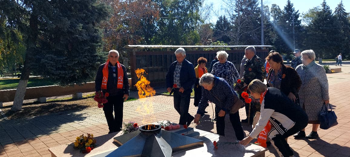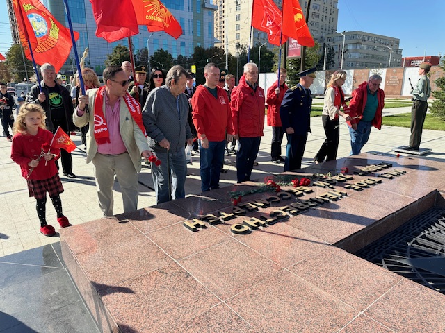 В Краснодаре коммунисты и активисты Союза Советских офицеров Кубани, сторонники КПРФ пришли на мемориал на Площади павших героев, к Вечному огню.