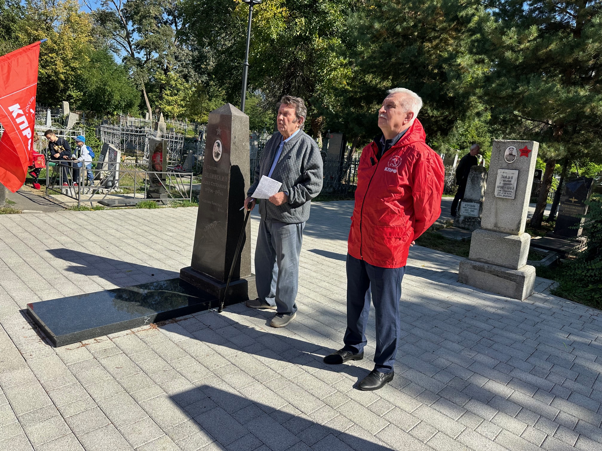 Затем, поклонившись Вечному огню и возложив к нему цветы, участники акции проследовали на Всесвятской кладбище – к обелиску в память о борцах за Советскую власть. Здесь также были возложены цветы, и продолжился разговор о том, что произошло 32 года назад, и об уроках тех событий.