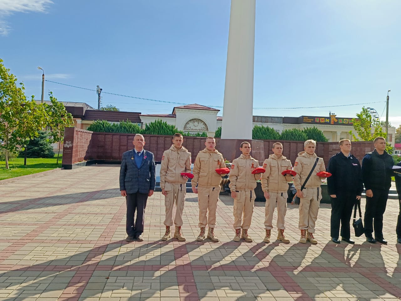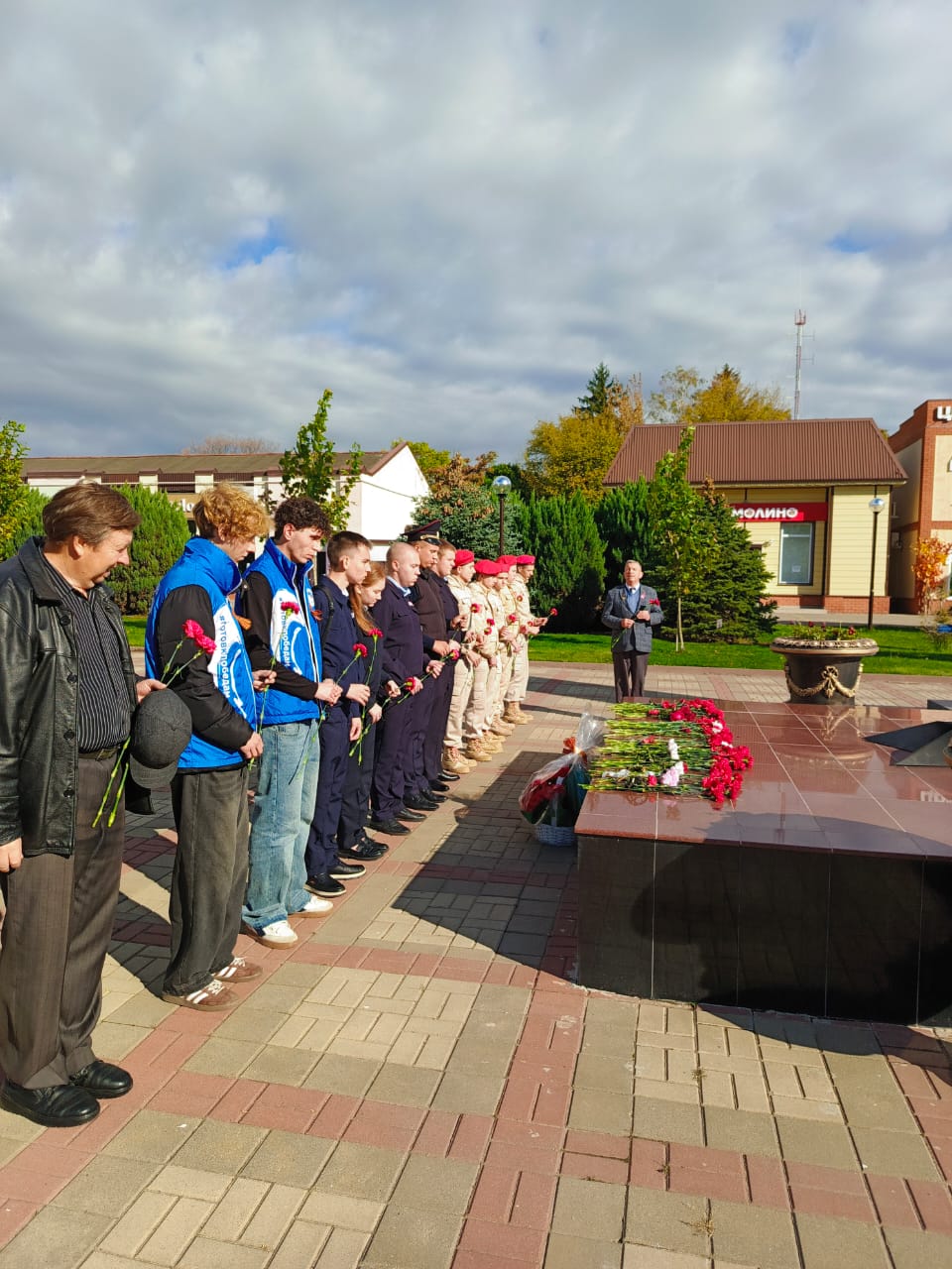 Также под руководством директора техникума, первого секретаря райкома КПРФ А.М. Лымаря молодые патриоты, студенты и юнармейцы, возложили цветы к обелиску Воинской и Трудовой Славы района.
