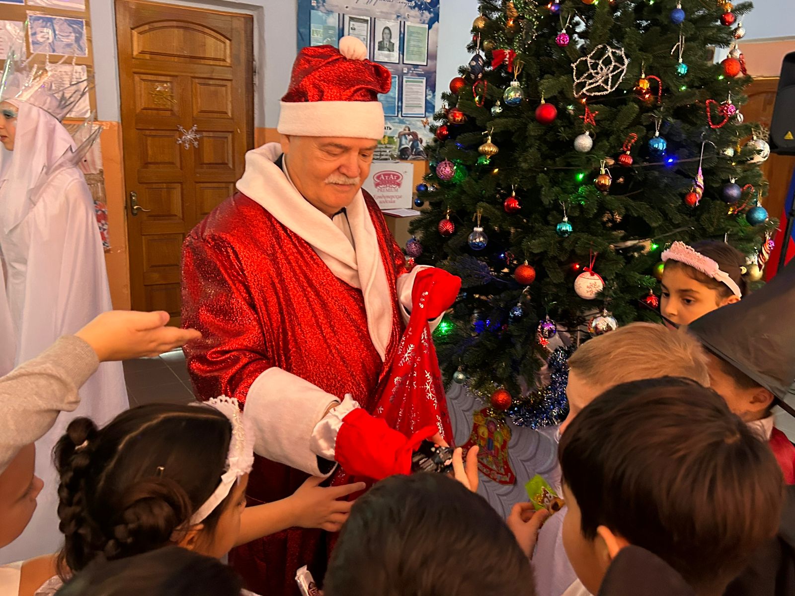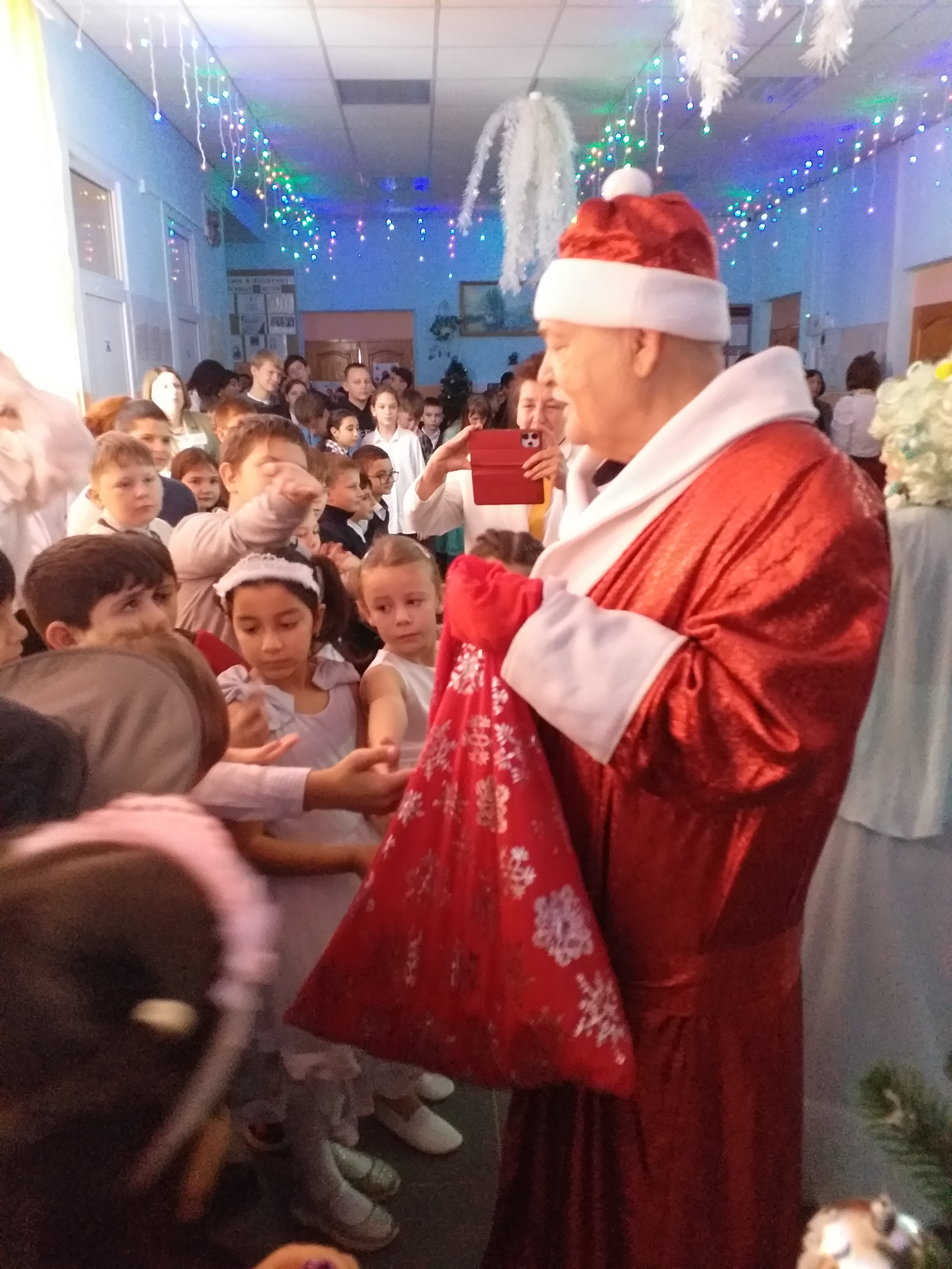Н.И. Осадчий подготовил сотню сладких подарков – по количеству учеников. Вручить подарки каждому школьнику помогли два Деда Мороза, одним из которых на время стал Н.В. Боровков. А самому депутату за постоянное внимание к детям и молодежи от руководства школы было вручено Благодарственное письмо.