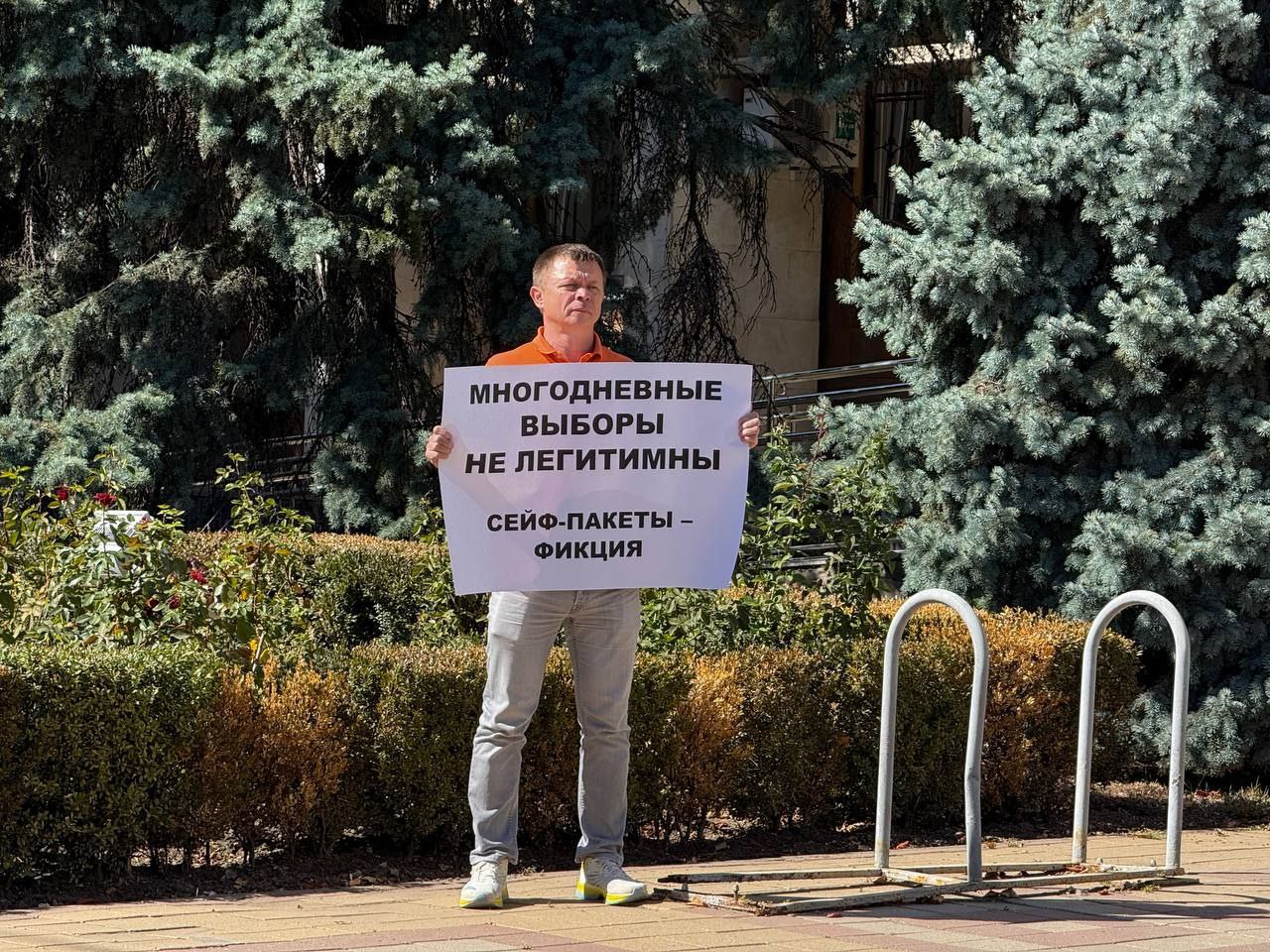 В Краснодаре прошел одиночный пикет против принципа многодневных выборов