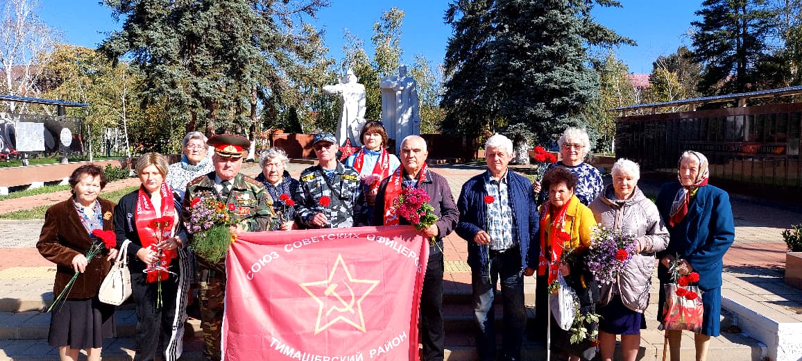 Тимашевск. Коммунисты и сторонники партии возложили живые цветы к подножию мемориала в честь Защитников Родины.