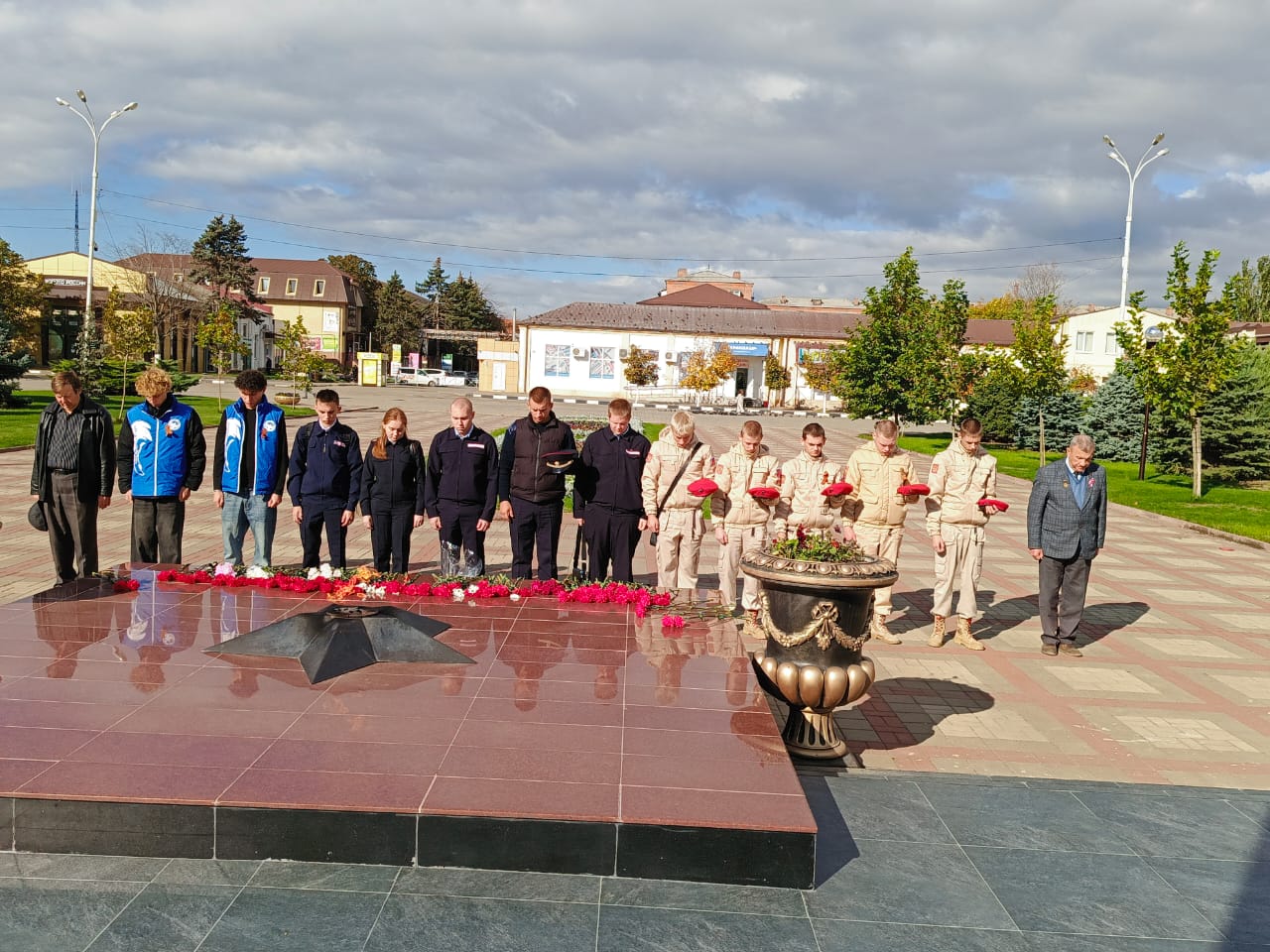 Также под руководством директора техникума, первого секретаря райкома КПРФ А.М. Лымаря молодые патриоты, студенты и юнармейцы, возложили цветы к обелиску Воинской и Трудовой Славы района.