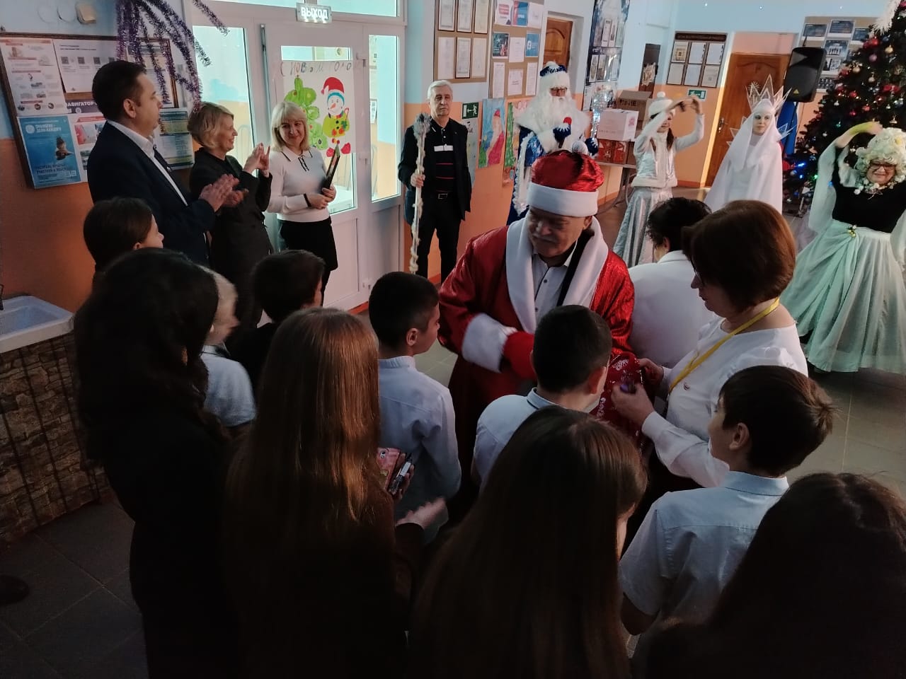 Н.И. Осадчий подготовил сотню сладких подарков – по количеству учеников. Вручить подарки каждому школьнику помогли два Деда Мороза, одним из которых на время стал Н.В. Боровков. А самому депутату за постоянное внимание к детям и молодежи от руководства школы было вручено Благодарственное письмо.