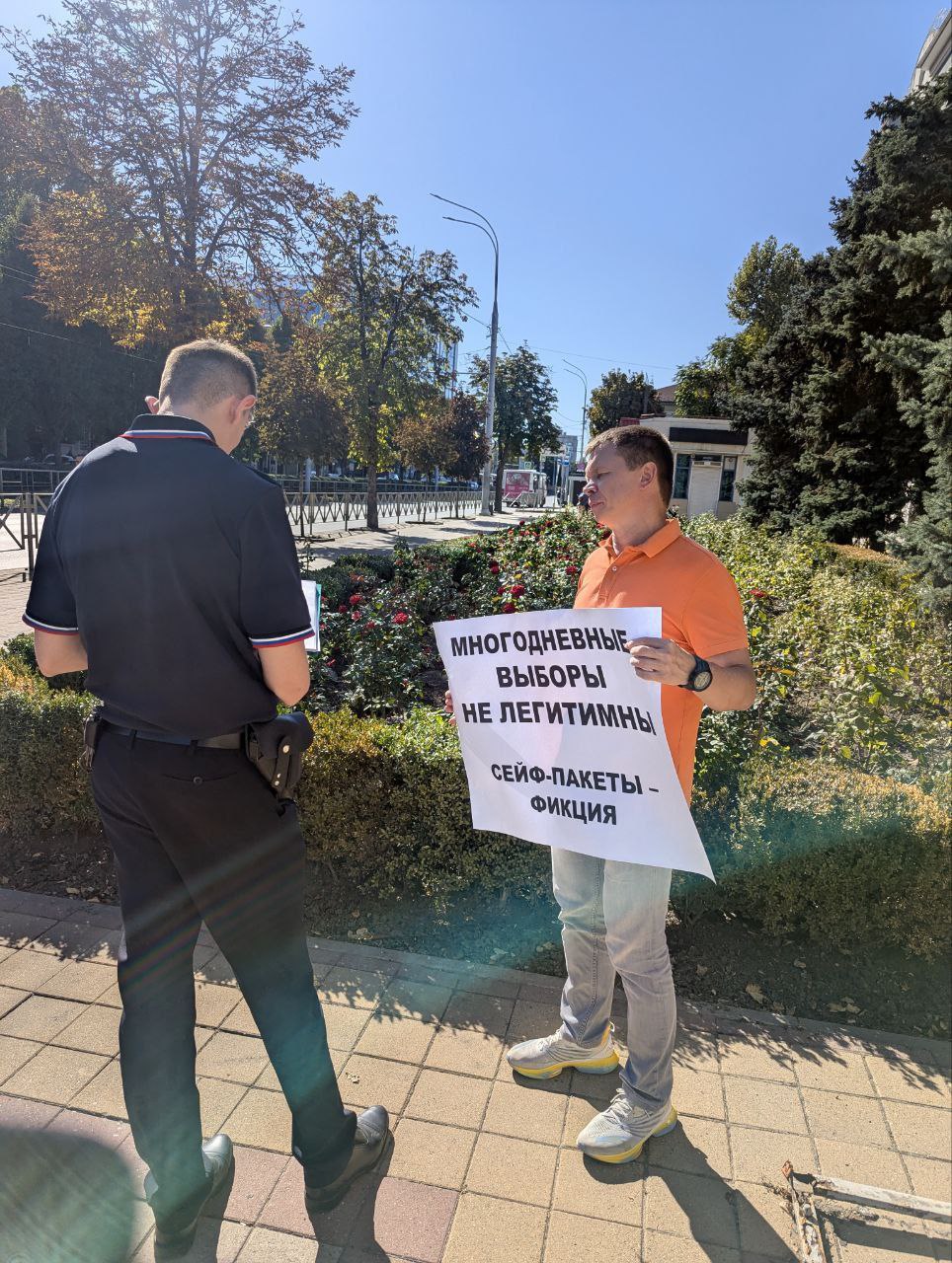 В Краснодаре прошел одиночный пикет против принципа многодневных выборов